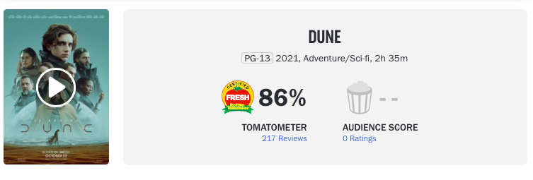 A nota pode estar perto de uma média definitiva para Duna. O filme de Dennis Villeneuve já conta com 217 avaliações.