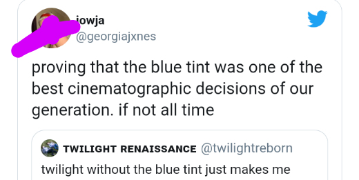 “Provando que o filtro azul foi uma das melhores decisões cinematográficas de nossa geração. Se não de todos os tempos”, tuitou uma fã.