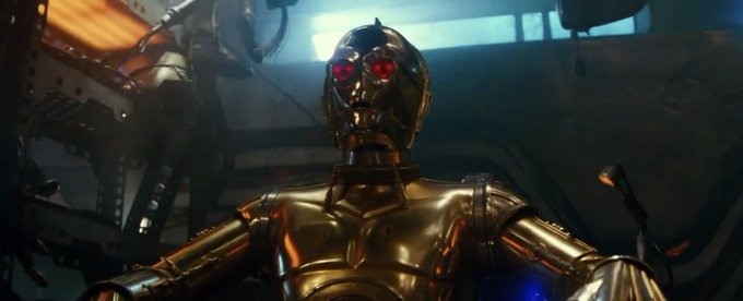 Outro detalhe que chamou atenção é que até o C-3PO pode ter um lado sombrio. Como visto na imagem abaixo, o robô aparece com os olhos vermelhos.