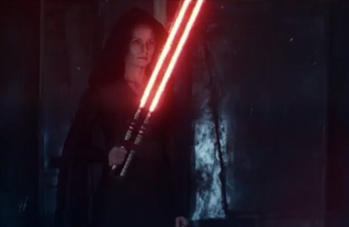 A nova prévia traz algo inesperado para os fãs. A protagonista Rey pode sucumbir ao lado sombrio da Força. Veja as fotos abaixo, com a personagem usando um sabre de luz vermelho e vestida com um manto preto.