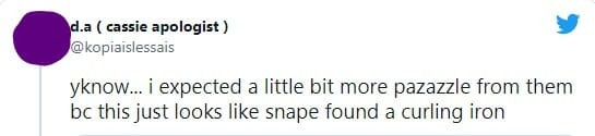 “Sabe… eu esperava um pouco mais de criatividade deles, porque só parece que o Snape deixou o cabelo ondulado”, escreveu mais uma fã.