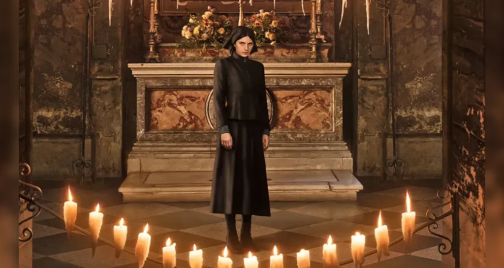 Imaculada traz Sydney Sweeney como protagonista, interpretando uma jovem freira que descobre estar grávida em um convento. A narrativa se desenvolve em um ambiente isolado, onde a pressão da comunidade religiosa e a culpa se entrelaçam, criando um clima de tensão constante.