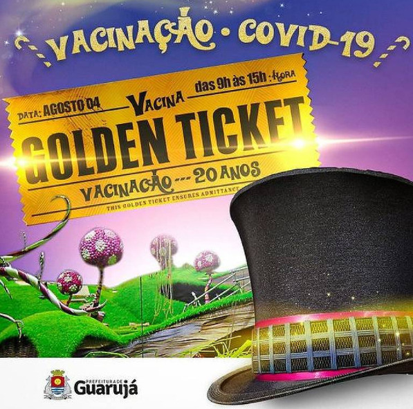 A prefeitura de Guarujá não se limitou a Harry Potter, também criou uma imagem usando A Fantástica Fábrica de Chocolate para convocar os jovens de 20 anos para vacinarem-se.