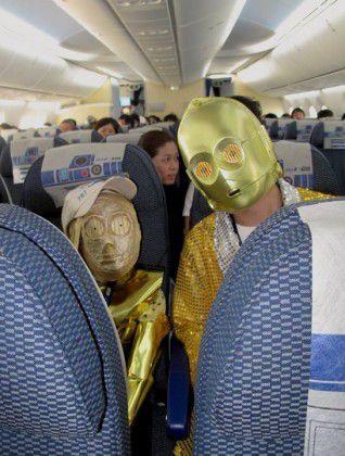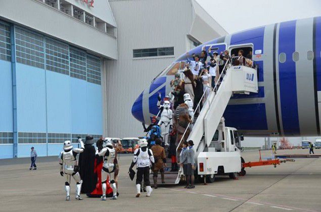 Um avião temático de Star Wars, o jet R2-D2 da companhia All Nippon Airways, realizou o seu primeiro voo neste fim de semana, saindo de Haneda, no Japão, com destino a Vancouver, no Canadá.