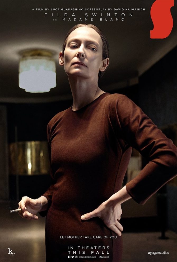 Após uma série de cartazes na última semana, a conta oficial de Suspiria no Twitter divulgou o cartaz da Madame Blanc, misteriosa personagem de Tilda Swinton no filme. Confira no final da notícia.