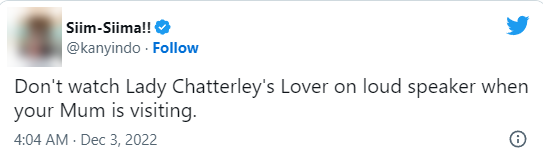 “Não vejam O Amante de Lady Chatterley em volume alto quando sua mãe estiver por perto”, tuitou outra fã.