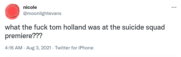 “Mas que diabos? Tom Holland estava na estreia de O Esquadrão Suicida”, disse outra fã.