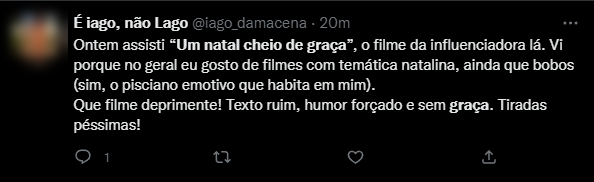 Ainda que esteja no top 10 da Netflix – atualmente em terceiro lugar dentre os 10 filmes mais assistidos da plataforma de streaming no Brasil nos últimos dias -, Um Natal Cheio de Graça não está sendo muito bem recebido.