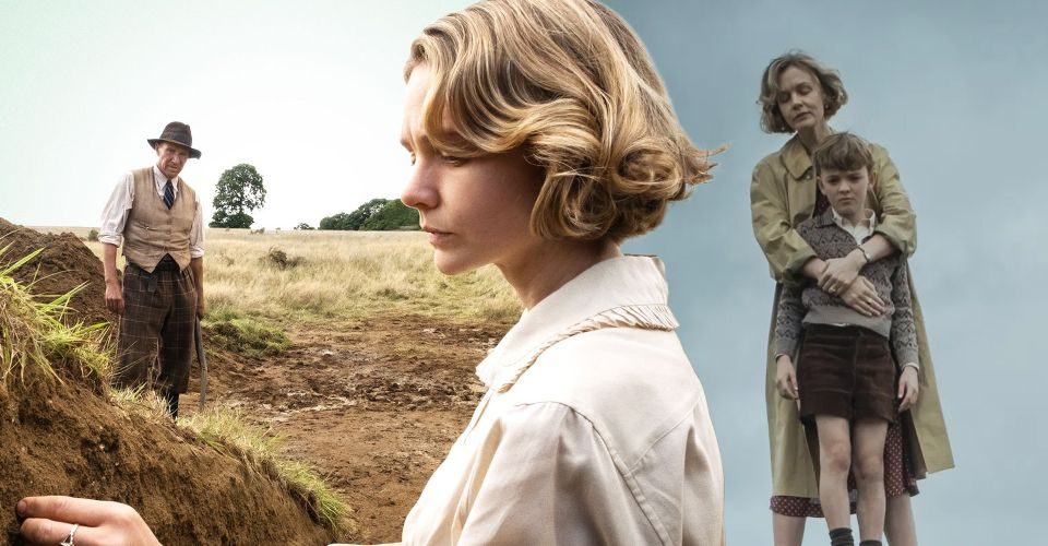 No enredo da Netflix, uma viúva chamada Edith Pretty (Carey Mulligan) contrata um escavador amador chamado Basil Brown (Ralph Fiennes) para investigar sua propriedade.