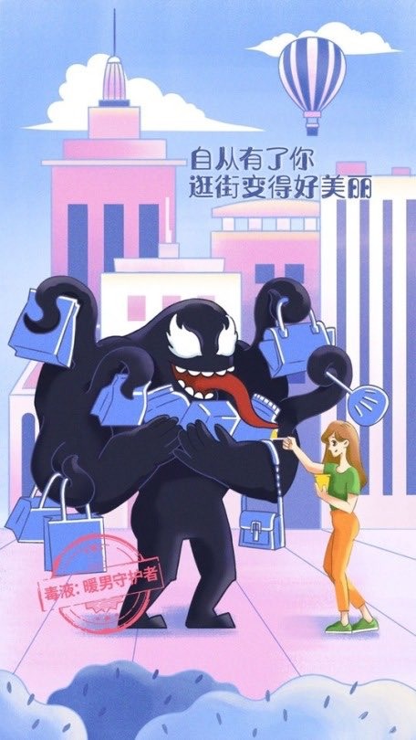 No marketing chinês, vemos o Venom ajudando sua namorada a carregar as compras. Enquanto que no indiano, ele conversa com sua mãe pelo Whatsapp. Veja abaixo.