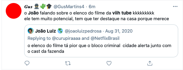 O que acontece é que o comentário está viralizando e muitos fãs estão rindo da reação. Enquanto isso, outros pedem que João repita essa energia do tuíte no Big Brother Brasil 21.