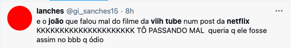 Em um momento bem sincero, João do BBB 21 respondeu a uma amiga que queria que os dois assistissem ao filme de Viih Tube.
