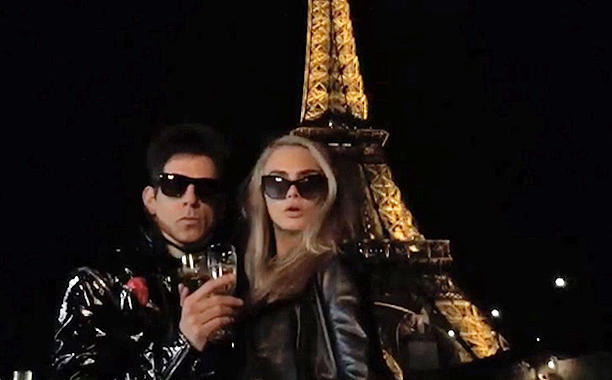 Cara Delevingne se encontrou com Ben Stiller, caracterizado como Zoolander, em Paris, e os dois simularam uma pegação para promover o segundo filme da série.