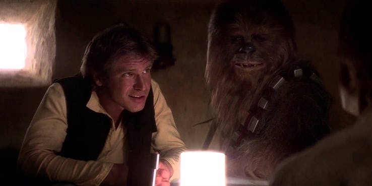 ELE SALVOU CHEWBACCA DA ESCRAVIDÃO | Não muito depois dos wookies ajudarem o Mestre Yoda nos eventos de A Vingança dos Sith, Chewbacca e muitos de sua espécie foram escravizados pelo Império. Foi quando o jovem tenente Solo notou as condições horríveis nas quais os alienígenas peludos eram mantidos que ele se voltou contra o Império e ajudou Chewie e companhia a fugirem – forjando assim uma amizade para a vida toda.