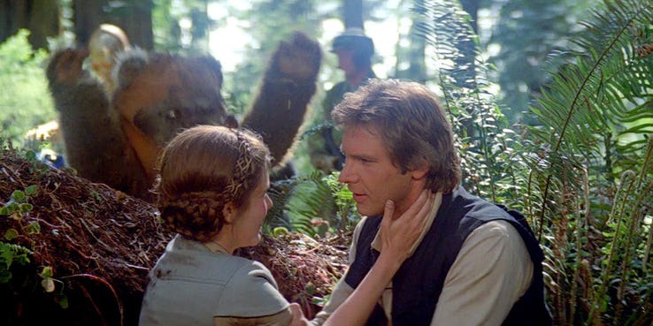 ELE SE CASOU COM LEIA | Você provavelmente tinha presumido isso, mas os filmes de Star Wars não mostraram de fato Han e Leia se casando. O detalhe que você não sabia, portanto, é que os pombinhos sagraram sua união no planeta de Endor, o mesmo onde a batalha final de O Retorno de Jedi acontece, no dia seguinte da vitória sobre o Império!