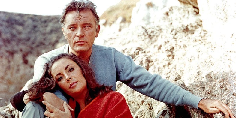 RICHARD BURTON | Cléopatra (1963) não foi só um dos épicos mais suntuosos da história de Hollywood – foi também o centro de um escândalo quando dois astros casados, Elizabeth Taylor e Richard Burton, largaram seus respectivos cônjuges para ficarem juntos após se apaixonarem no set. O ator era casado com Sybil Burton, enquanto a atriz estava com Eddie Fisher.