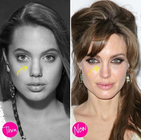 ANGELINA JOLIE | Especialistas apontam para a afinação no nariz de Jolie como a principal evidência de que ela fez cirurgias plásticas, e muitos acham que ela também fez aplicações de botox. Mesmo assim, Jolie nega veementemente que tenha passado por qualquer procedimento estético.