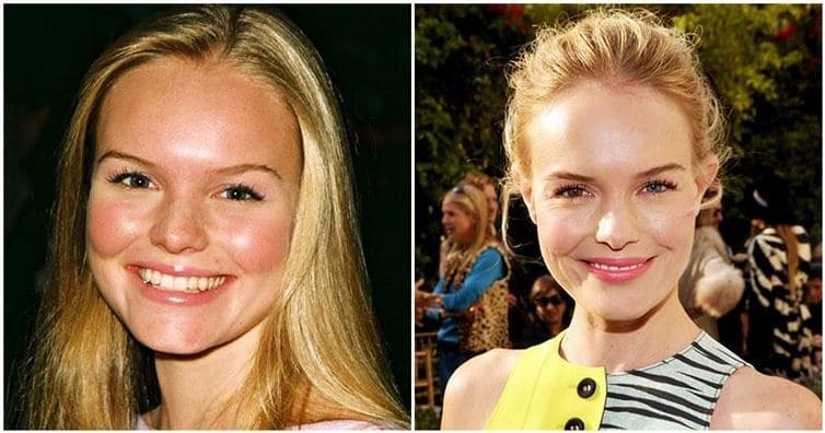KATE BOSWORTH | A modelo que virou estrela de Superman: O Retorno (2006) e Quebrando a Banca (2008) mudou de forma definitiva sua aparência com o passar dos anos. Observadores dirão que o formato do nariz foi bem modificado, além das bochechas.