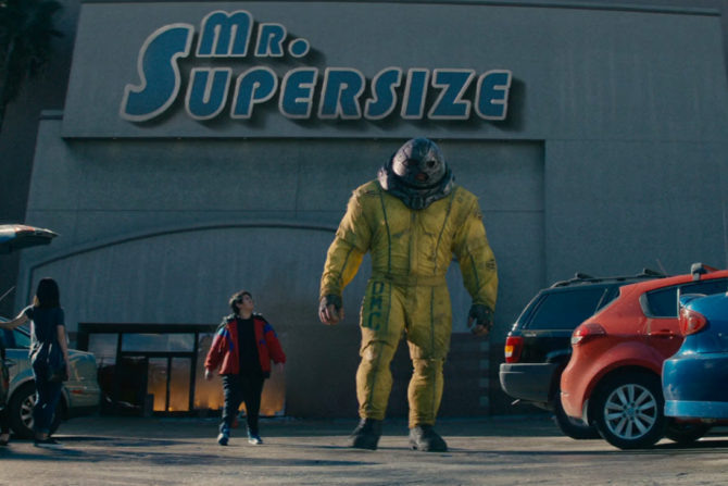 Uma cena curta, mas engraçada. Nela, vemos Russell e o Fanático saindo de uma loja de departamentos, e o jovem mutante reclama que não conseguiu encontrar nenhuma roupa para o tamanho gigantesco do brutamontes, impedindo que os dois “pudessem combinar” no visual.
