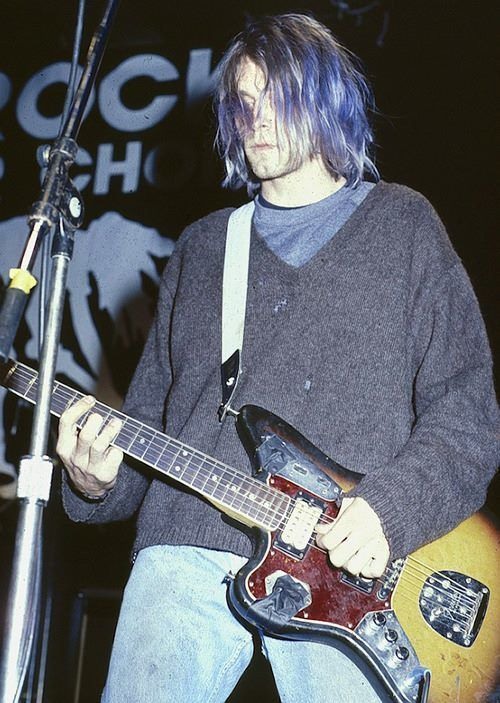 KURT COBAIN | O vocalista do Nirvana reportadamente “encheu uma banheira de tintura azul misturada com água e mergulhou nela”, como uma espécie de protesto contra uma sessão de fotos que não queria fazer. Muita gente curtiu o visual de cabelo azul de Cobain, que acabou deixando o cabelo assim mesmo.