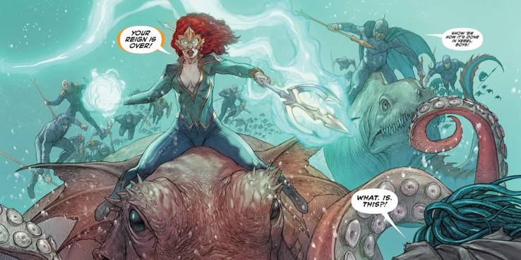 Além disso, como ela estava aprendendo combate, Mera foi ensinada a derrubar alguns dos maiores e mais ameaçadores monstros no oceano.