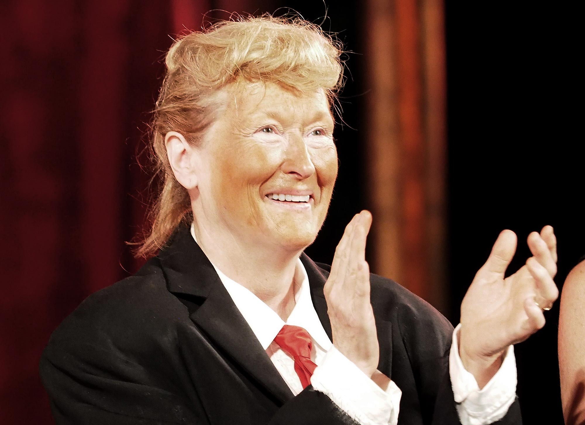 2016 – INTERPRETANDO TRUMP | Em aparição surpresa no Public Theater Gala, Streep usou maquiagem, próteses e um terno mal-ajustado para interpretar o novo presidente dos EUA, Donald Trump. Desde então, os dois tem se desentendido, com o comandante-em-chefe dizendo, entre outras coisas, que Meryl é “superestimada”.