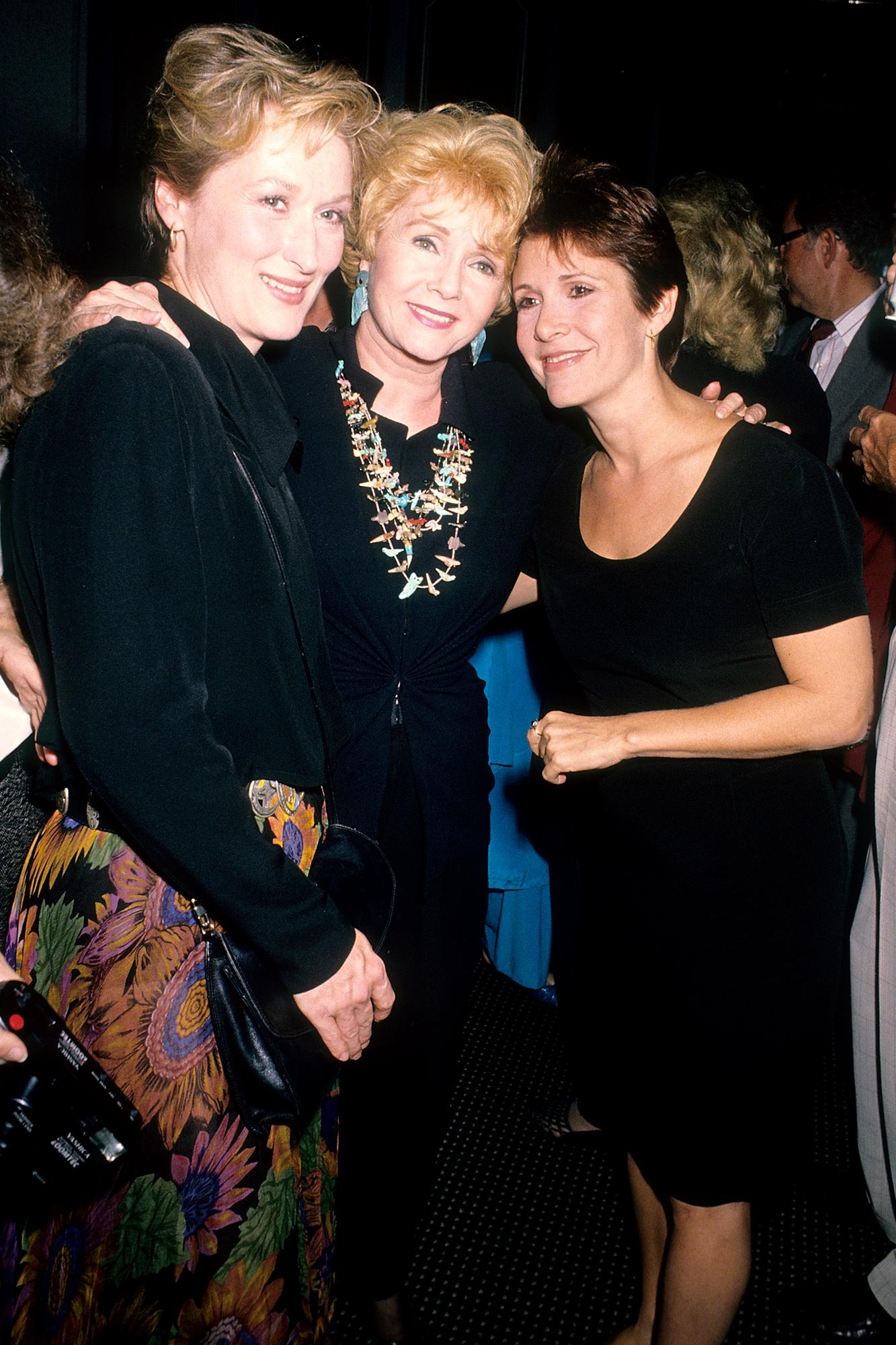 1990 – CARRIE, MERYL E DEBBIE | Uma amizade para a vida inteira nasceu em 1990, quando Streep foi chamada para interpretar a protagonista de Lembranças de Hollywood, uma atriz viciada em drogas que volta para a casa da mãe, uma lenda do cinema. O filme era inspirado no livro autobiográfico de Carrie Fisher, a eterna Princesa Leia – aqui, Meryl aparece ao lado de Carrie e sua mãe da vida real, Debbie Reynolds.
