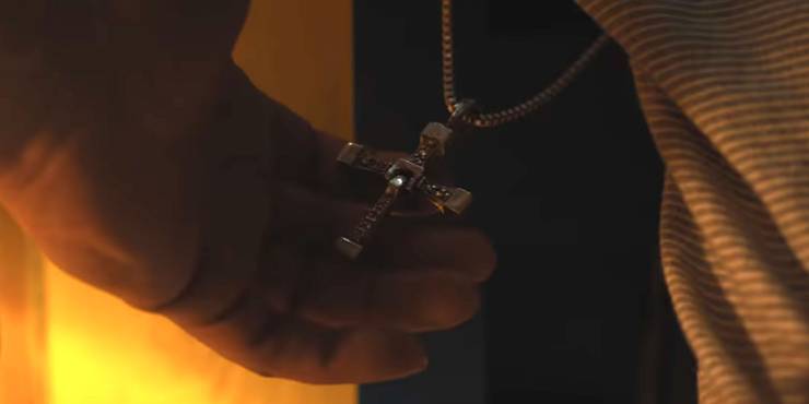 Ela diz que é um sinal de proteção contra perigos futuros. Letty o coloca amorosamente no pescoço de Brian, enquanto Dom aperta o colar quando ele não está mais no pescoço do filho.