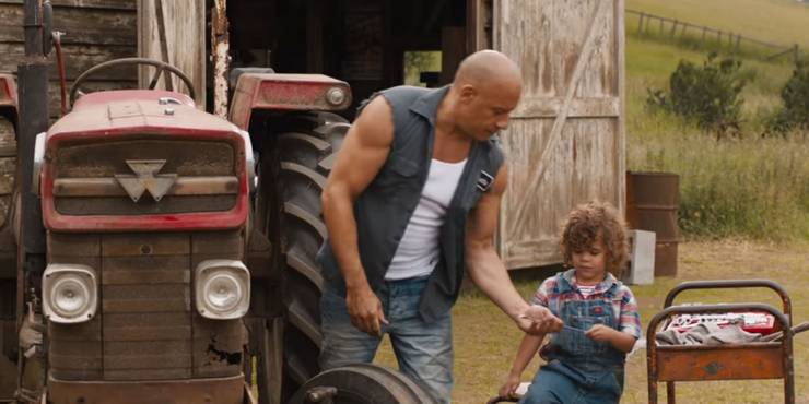 O trailer de Velozes e Furiosos 9 começa com Dom e Letty estabelecidos no país para criar seu filho Brian, e o jovem Toretto é o melhor indicador de quanto tempo se passou desde Velozes e Furiosos 8. Brian era apenas um bebê durante os eventos do último filme, mas aqui ele cresceu bastante desde então.