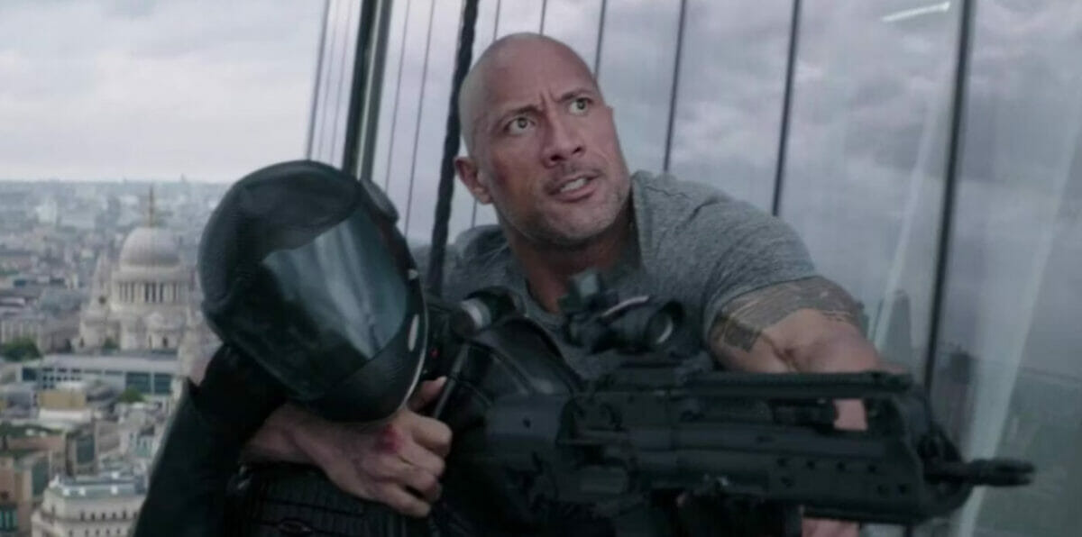 Este momento não acontece na franquia Velozes e Furiosos, mas sim no derivado Hobbs & Shaw. Para sequestrar Hattie Shaw, a misteriosa organização Eteon ordena a invasão de um arranha-céu por seus agentes. Os mercenários usam cabos de elevador para deixar o prédio, e a partir daí, Luke Hobbs vive sua cena mais bizarra.