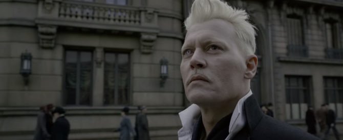 Capturado no final do primeiro Animais Fantásticos, o mago das trevas Gellert Grindelwald aparece orquestrando uma fuga em grande escala. Com os cabelos e barba longa, Grindelwald assume o controle de uma carruagem flutuante, que provavelmente o conduzia para a prisão mágica de Azkaban.