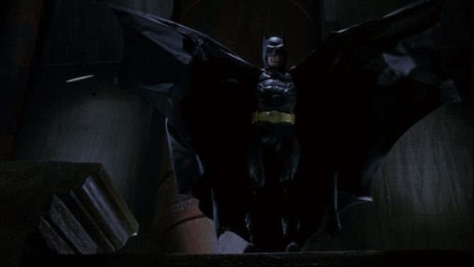 O Coringa de Jack Nicholson foi um show à parte no primeiro grande filme do herói nos cinemas, e o confronto final entre Batman e o Palhaço do Crime faz jus ao talento de ambos. Com o Morcego descobrindo que o vilão foi o assassino de seus pais, vemos um lado sombrio e agressivo do herói, o que culmina em um dos grandes momentos da produção.