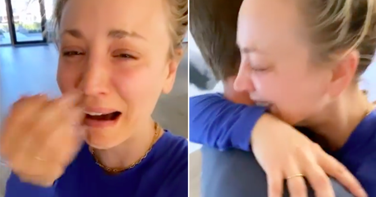 A estrela de The Big Bang Theory chorou ao abraçar o marido.