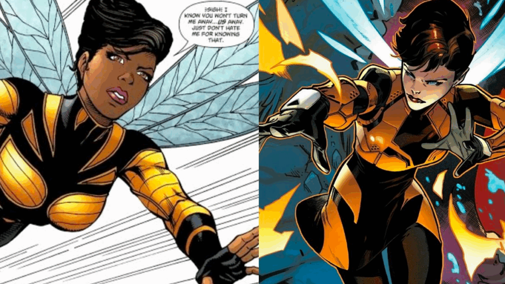 A Marvel lançou A Vespa nos anos 60 como fundadora dos Vingadores. Ela encolhe, voa e dispara rajadas de energia, som familiar? Pois em 1977, a DC apresenta Abelha, cientista brilhante com traje tecnológico e as mesmas habilidades.