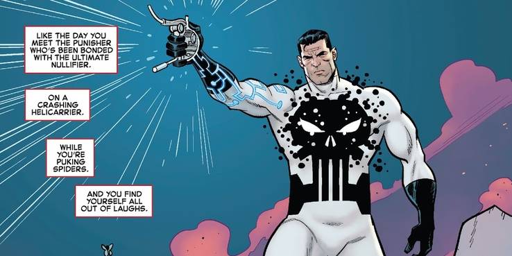 No entanto, a adição mais chocante também pode ser a mais monumentalmente poderosa: a trama introduz a maior arma da Terra, um Justiceiro que foi vinculado ao Nulificador Total.