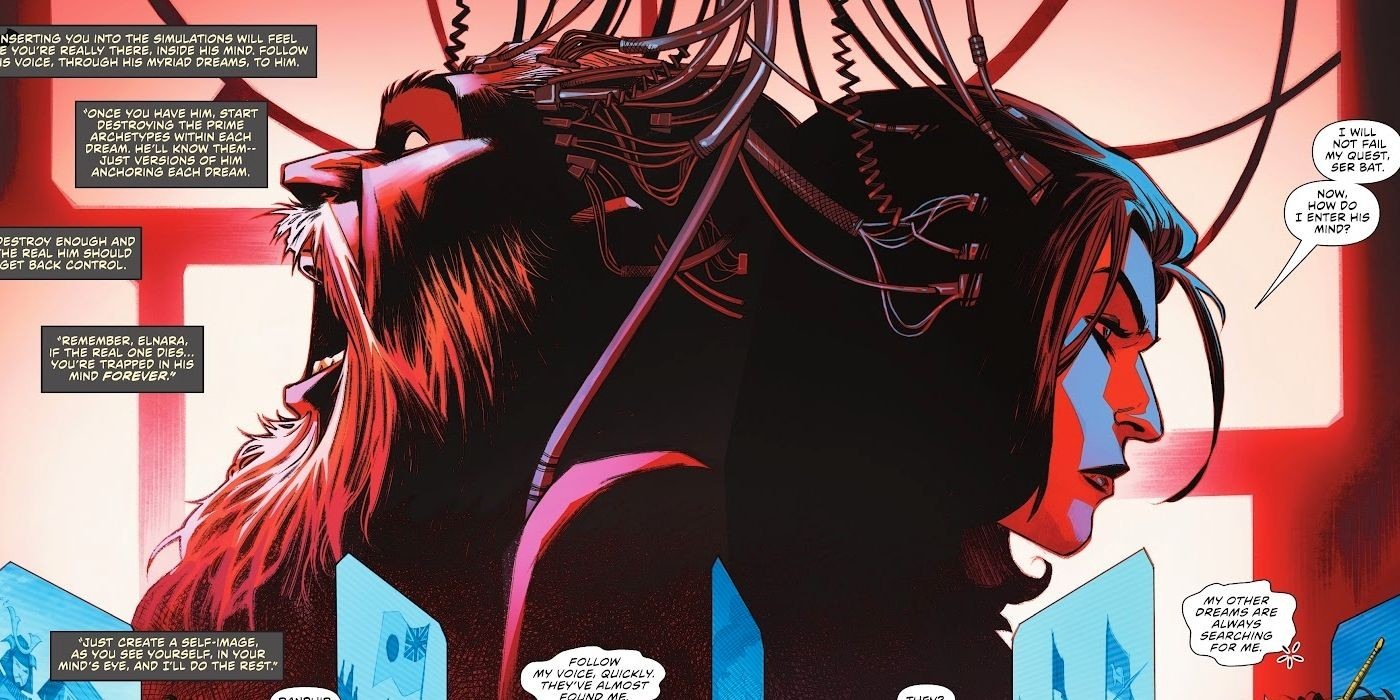Batman deduz que Elnara seria capaz de livrar a parte de Randhir que ainda estava em controle de si próprio.