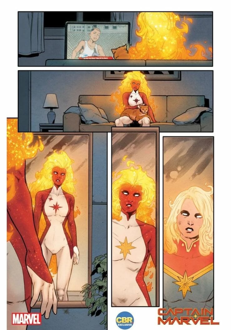 Capitã Marvel #38, da Marvel Comics, chegou às lojas de quadrinhos dos Estados Unidos em 4 de maio de 2022, revelando que a personagem título é substituída pela Binary.