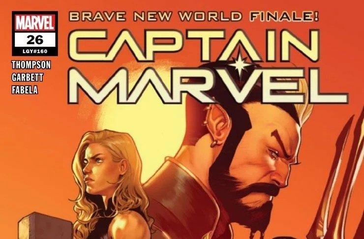 Prévias de Capitã Marvel #26 (via Liam McGuire, do ScreenRant) mostram a heroína trabalhando ao lado de heróis do futuro, incluindo a filha de Thor, para acabar com Ove.