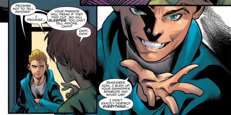 Parece que nem todo o simbionte foi destruído em seu ataque. Embora seja apenas indicado na página final da prévia de Web of Venom: The Good Son #1, podemos assumir que Dylan está prestes a mostrar a Normie que ele salvou um pedaço do simbionte vermelho.