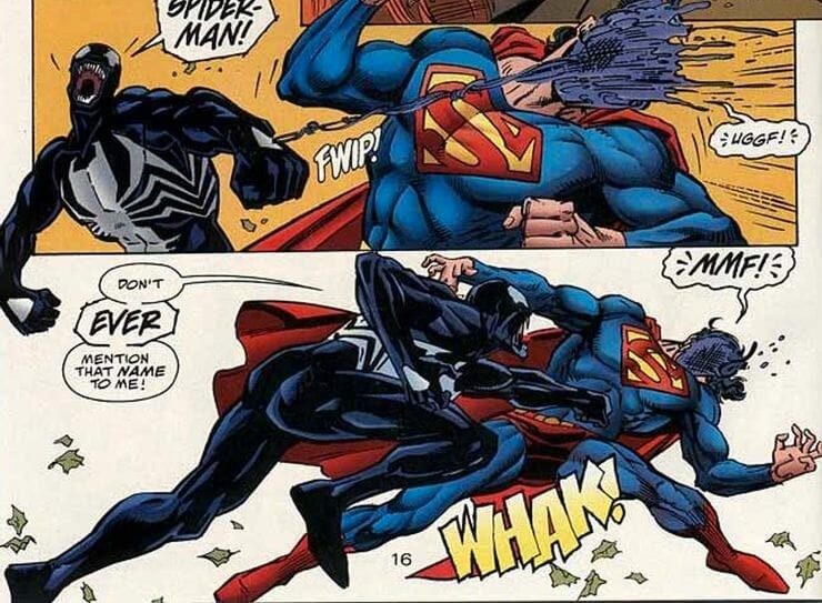Depois que Venom ataca e sequestra uma jovem, o Superman voa para resgatá-la. A batalha resultante entre os dois continua sendo uma das lutas mais difíceis que o Homem de Aço já travou, e uma de suas derrotas mais humilhantes até o momento (via Comic Book Resources).