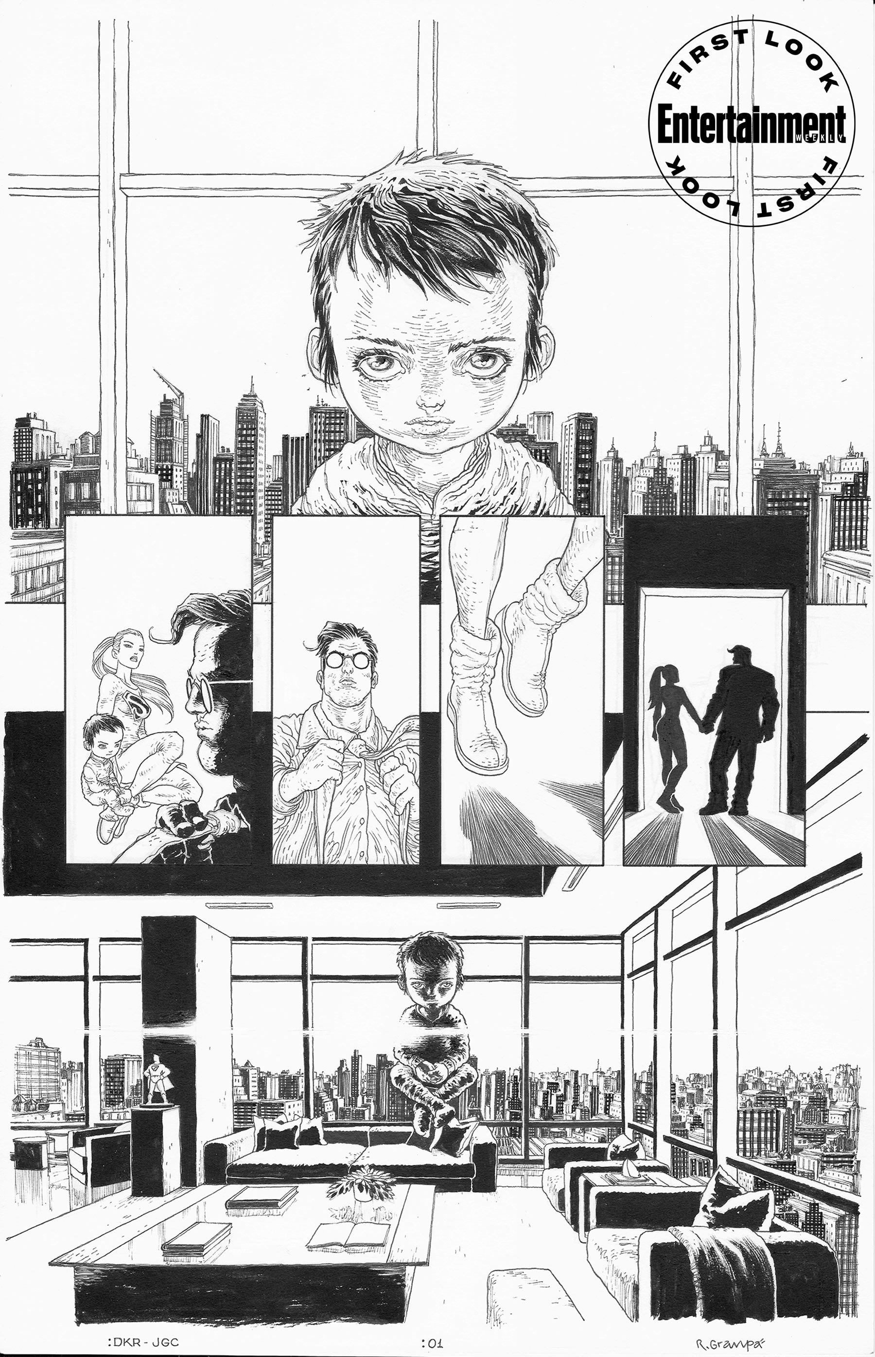 A Entertainment Weekly revelou nesta sexta, 13, as primeiras prévias da nova história. Vale notar que a “criança dourada” do título é simplesmente Jonathan Kent, filho do Superman e da Mulher-Maravilha.