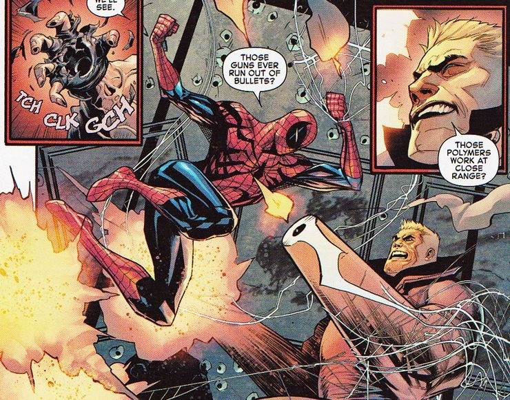 Esse é um dos trajes mais poderosos do Homem-Aranha. A habilidade é vista em uma luta desse herói da Marvel contra o Bushwacker.