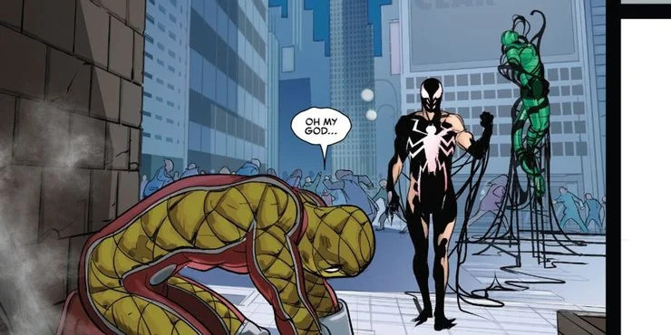 Esta nova tendência brutal continua enquanto o Homem-Aranha luta e mata Shocker e Escorpião, bem como seu empregador, Wilson Fisk. Confira no fim da matéria imagens deste Homem-Aranha alternativo e seu assustador traje de Venom.