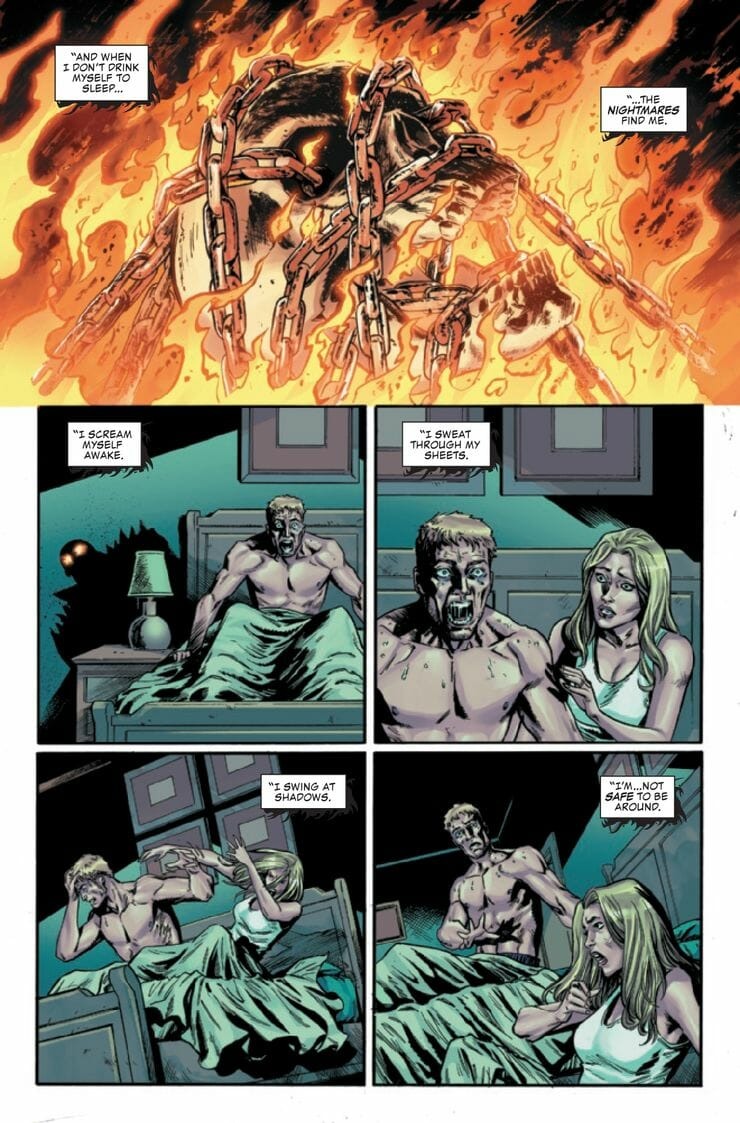 “Johnny Blaze tem a vida perfeita: uma esposa e dois filhos, um emprego em uma oficina mecânica e uma comunidade de cidade pequena que o apoia… Mas Johnny não está indo bem. Ele tem pesadelos com monstros quando dorme. E ele tem visões sangrentas quando está acordado. Esta vida está começando a parecer uma prisão”, diz a sinopse oficial.