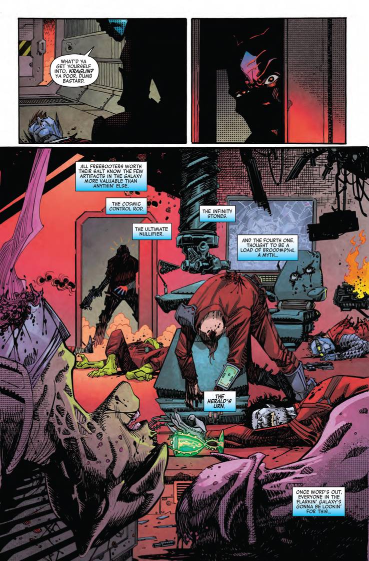 No entanto, Yondu chega e encontra Kraglin sangrando no chão, ao lado do resto dos Ravagers.