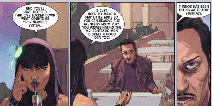 Em Eternos #5, Sersi está em uma busca para descobrir quem é o traidor dentro dos Eternos que vem ajudando Thanos.