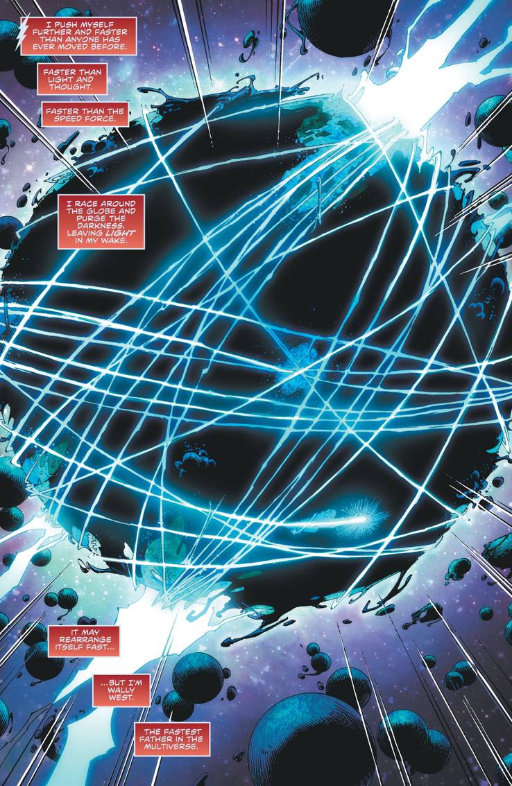 Wally se reúne com seus filhos desaparecidos, Jai e Iris West. No entanto, eles são rapidamente consumidos pela matéria do Multiverso Negro.
