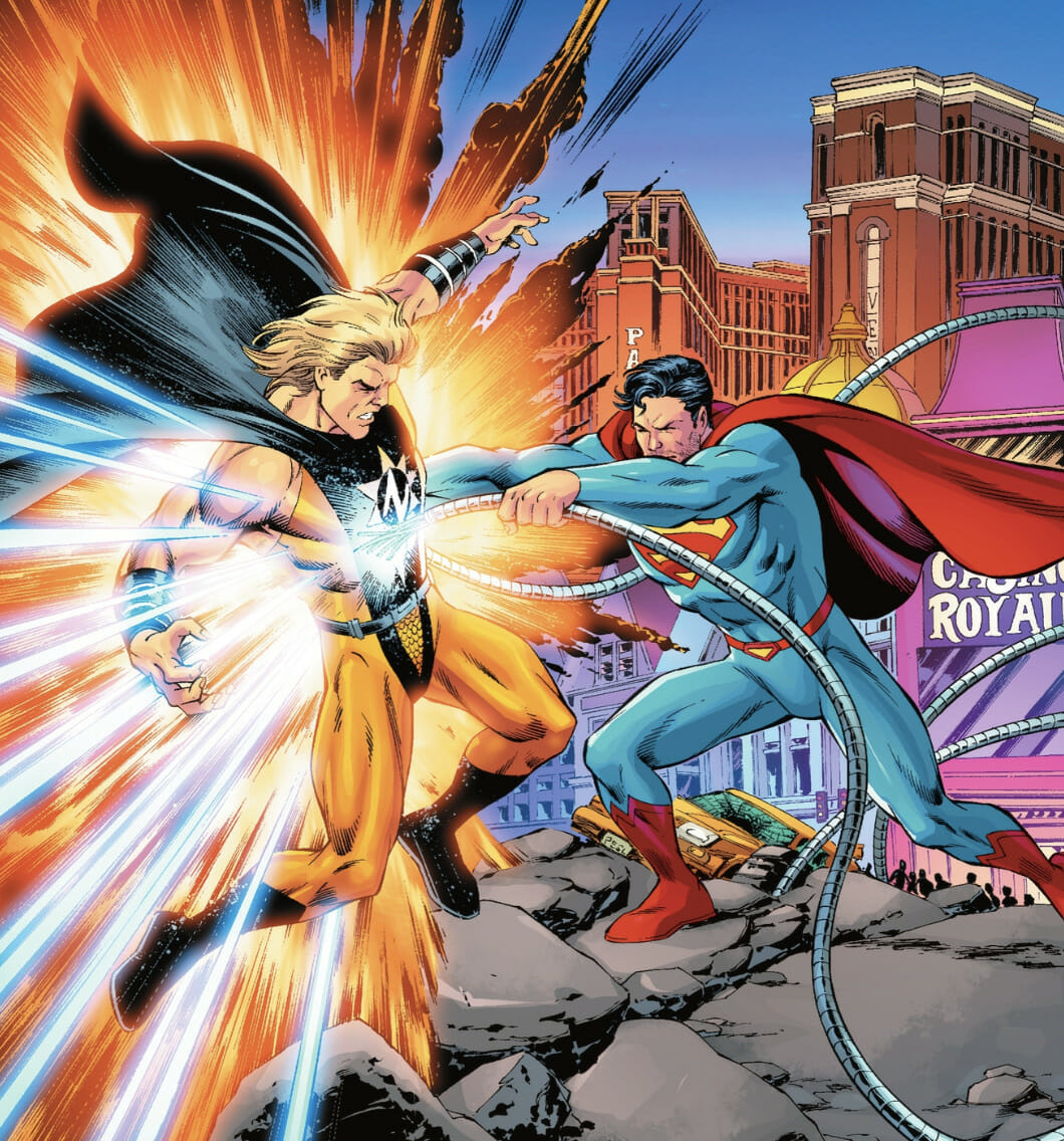 Uma dessas situações envolve uma luta do Superman com o Homem-Nuclear, que ele enfrenta em Las Vegas.