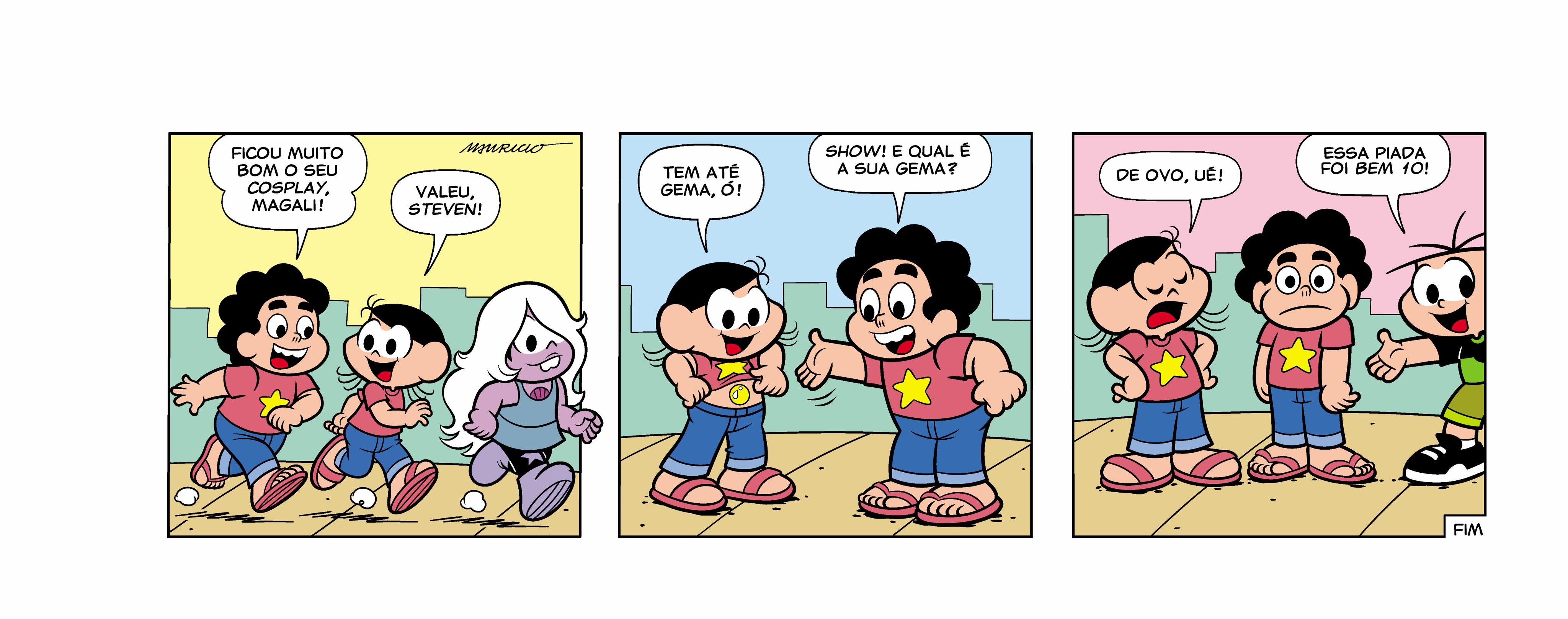 Os leitores poderão ver personagens como a Magali fazendo cosplay de Steven Universo ou o Xaveco com o Irmão do Jorel. Além disso, Cebolinha aparece com o Clarêncio e a Mônica com as Meninas Superpoderosas. A Hora da Aventura também foi lembrada nessa ação.