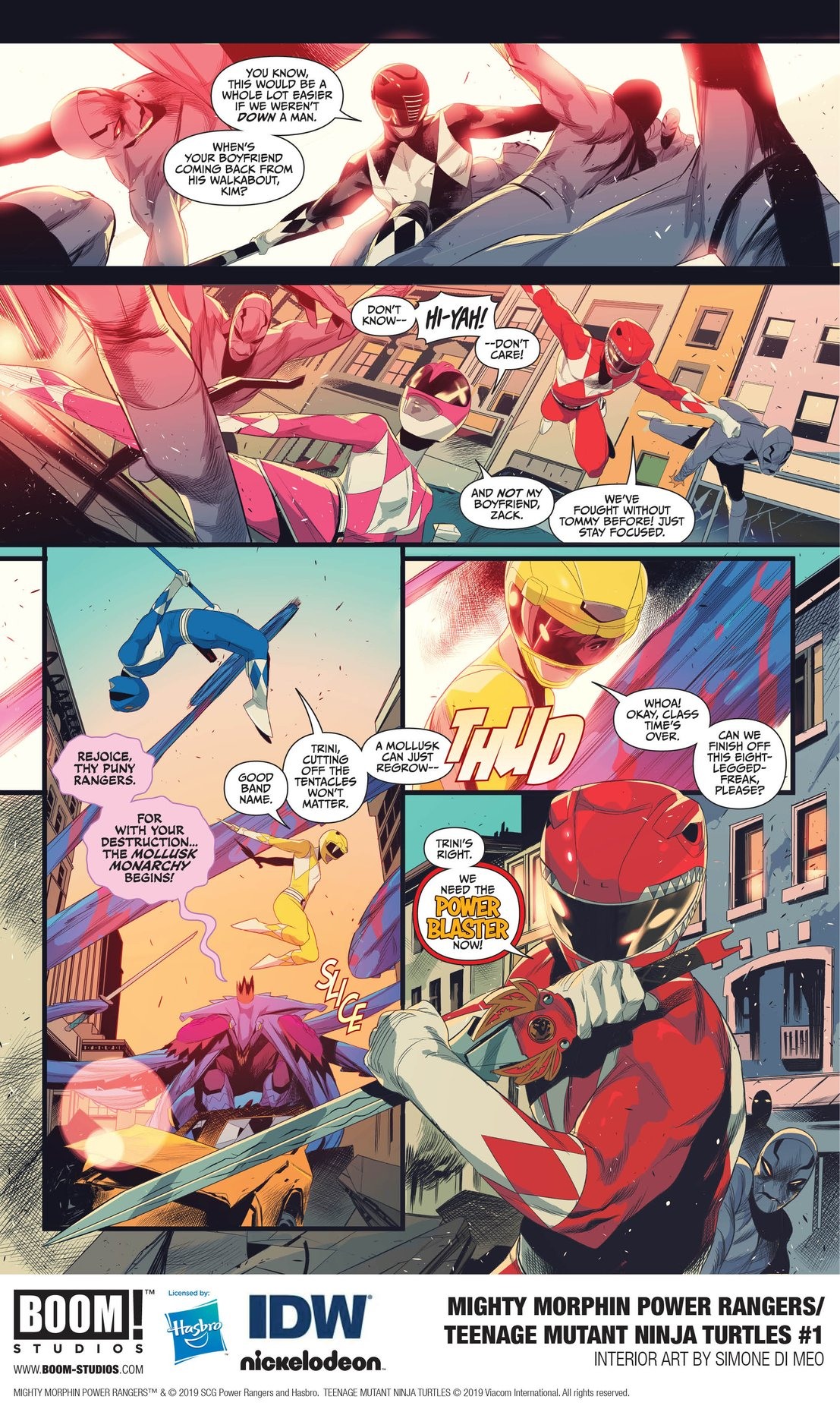 Mighty Morphin Power Rangers/Teenage Mutant Ninja Turtles #1 chegará nas lojas de quadrinhos americanas em dezembro.